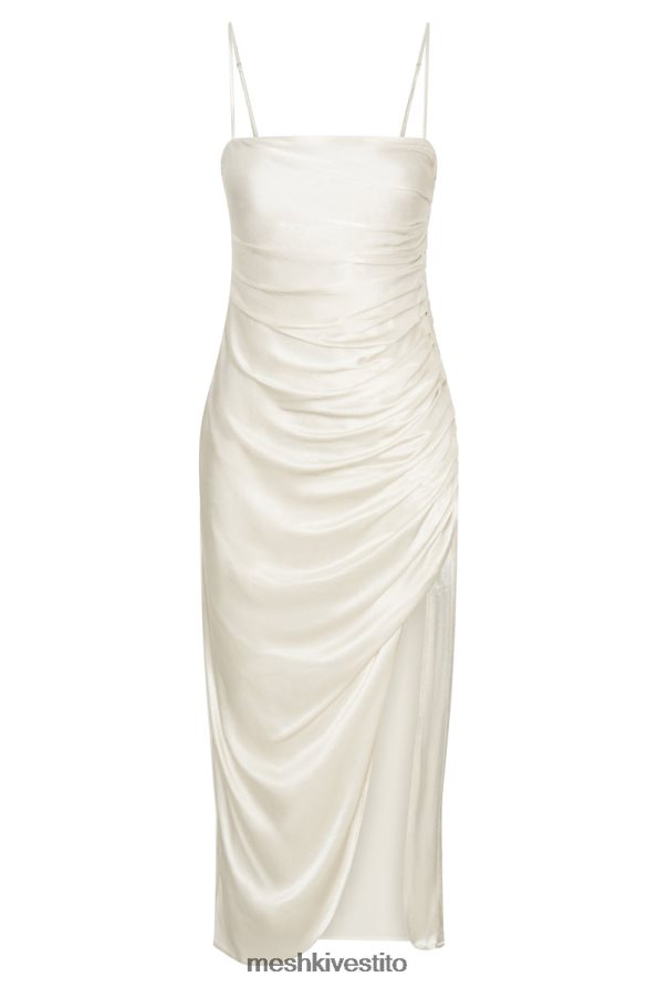Meshki Abito midi claudette con drappeggi in raso vestiario avorio 6L048P567