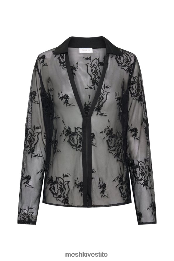questa è una camicia in rete ricamata e con perline che vanta un'abbottonatura in raso e uno scollo con colletto. Realizzata con chiusura a gancio e occhiello centro-frontale, questa camicia offre una vestibilità morbida sul busto, mentre il tessuto trasparente a maniche lunghe attira l'attenzione anche quando è coperta. abbinalo alla nostra minigonna in rete ricamata Vivica o al denim meshki per completare il look.