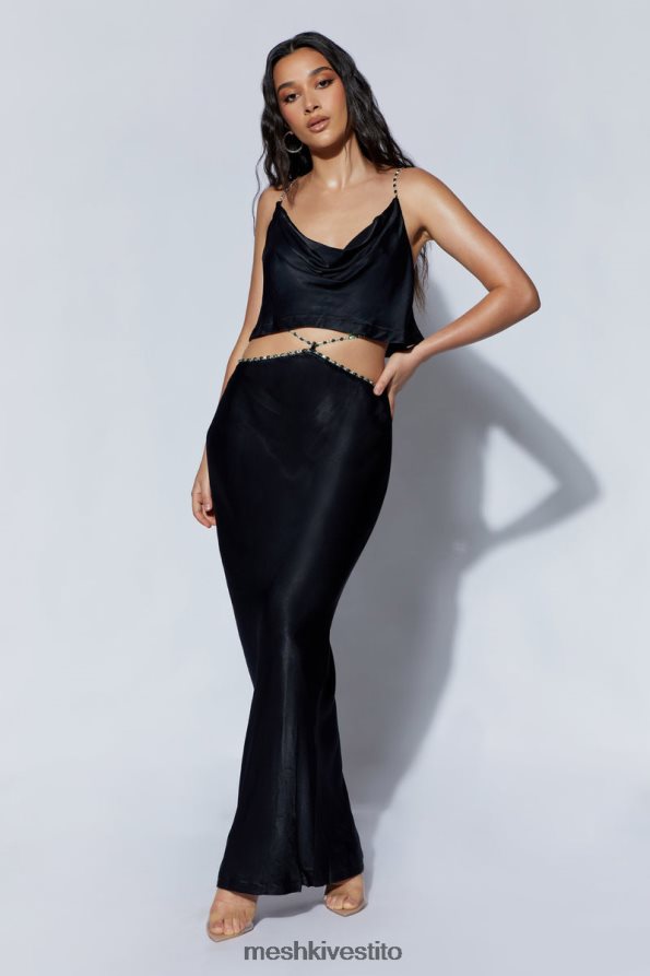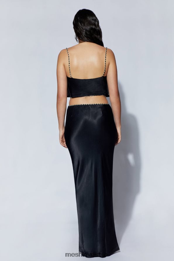 come una ballerina esotica ricoperta di gemme, corde e tessuti dai toni gioiello, incanala un'aria di grazia disinvolta nella maxi gonna con finiture in diamante Havva. Realizzata in materiale morbido e naturale che si piega e scorre con i tuoi movimenti, questa gonna crea una silhouette affascinante e naturalmente elegante. la notevole lunghezza della gonna aggiunge un leggero, sottile accenno di mistero che ben si abbina ai colori tranquilli e neutri del capo: bianco puro e nero solido. una vita bassa accentua la bella sporgenza dei tuoi fianchi, le curve morbide della tua vita, i tuffi e le alzate graduali delle tue figure. e lo scintillante rivestimento in diamante di Havva lo evidenzia ulteriormente! fidati di me; ti sentirai stupendo, glamour e davvero sexy con le corde ingioiellate che ti attraversano l'addome. lascia che questi fili scintillanti brillino abbinandoli al nostro top havva diamante, quindi completa questo look esotico con capelli arruffati ad arte, eyeliner fumé e semplici gioielli in oro o argento.