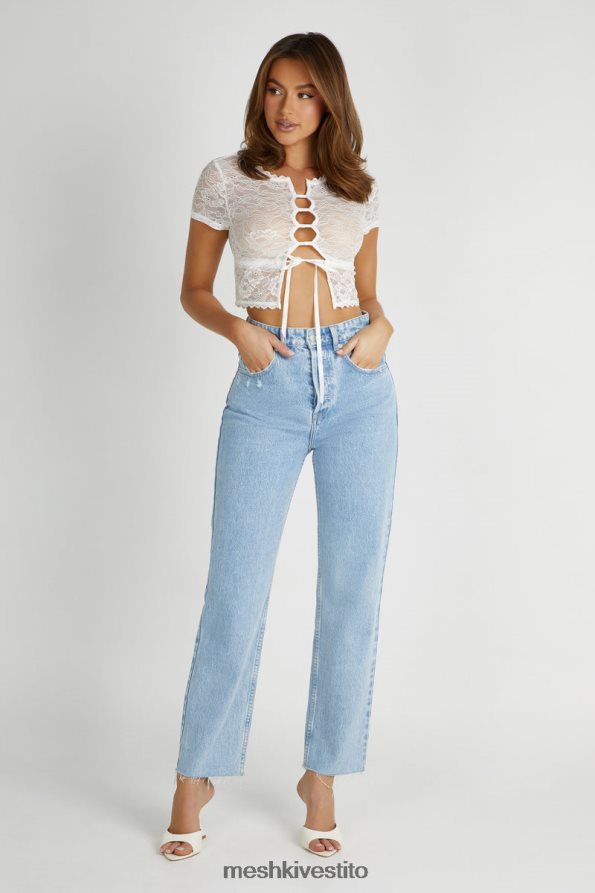 il farrah è un top in pizzo elasticizzato che offre una comoda elasticità pur mantenendo i suoi squisiti dettagli in pizzo. presenta uno scollo rotondo con un'accattivante apertura centrale sul davanti, che emana un fascino delicato, perfetto per un look da ragazza morbida. il design sfoderato ti consente di indossarlo così com'è, mettendo in mostra il tuo stile unico, o abbinarlo a una bralette di pizzo per una maggiore copertura mentre la chiusura con lacci nella parte anteriore della parte superiore consente la personalizzazione, garantendo una vestibilità lusinghiera che completa la tua forma. abbinalo alla nostra gonna midi in pizzo satinato Mia o ai jeans per completare il look.